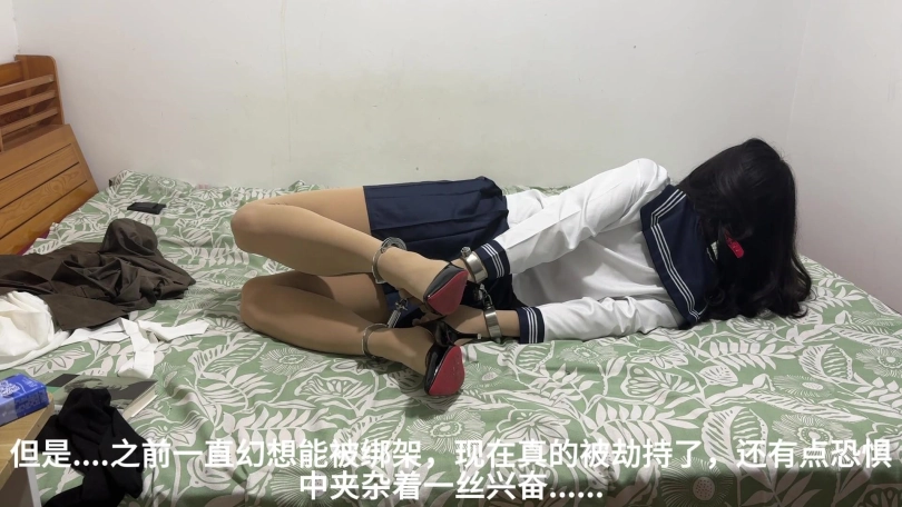 【柚里】下班的美女白领被女贼劫持,强迫穿水手服高跟鞋被铐逃脱不得