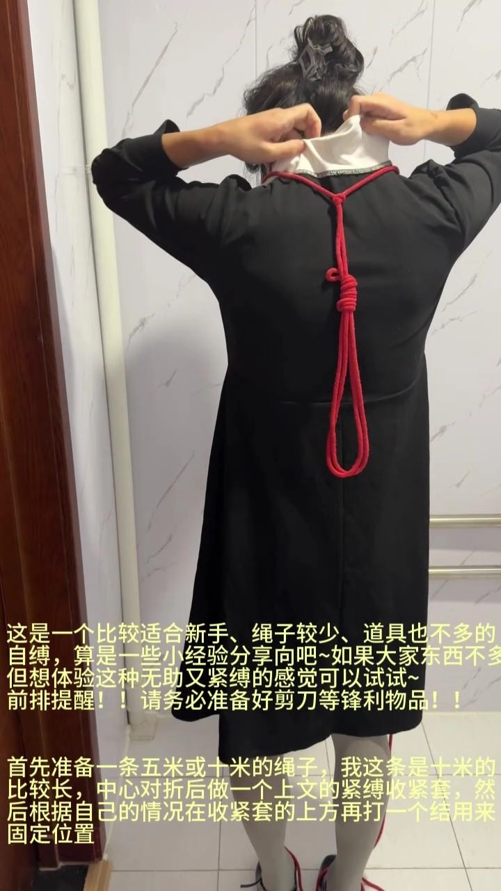 › 【柚里】【自缚教程】绝对解不开的两种双重绳圈收紧套自缚~比较适合新手,务必准备剪刀!!