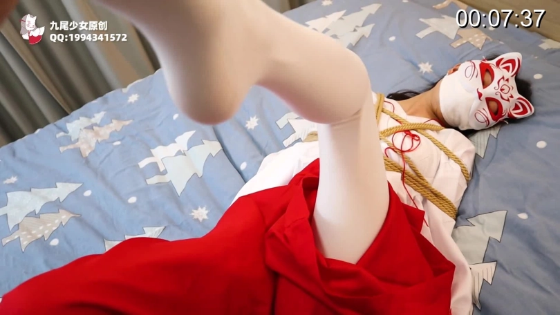 › 【九尾少女】神社白丝巫女,狐妖上身,狐媚诱惑,捆绑驱邪,强制GC调教