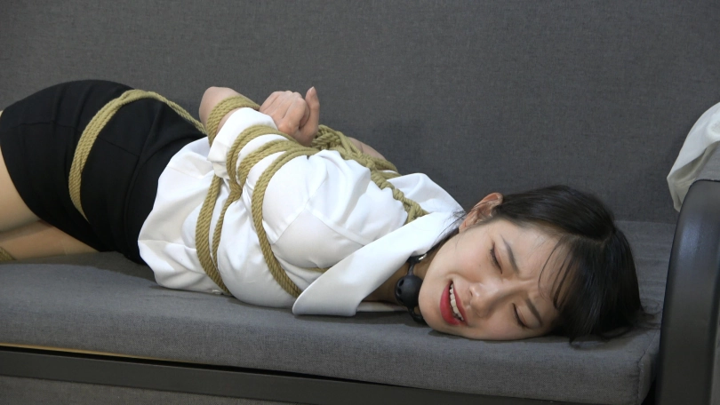 彪哥直接拿出口球给华冰冰塞上,然后将华冰冰捆绑起来。