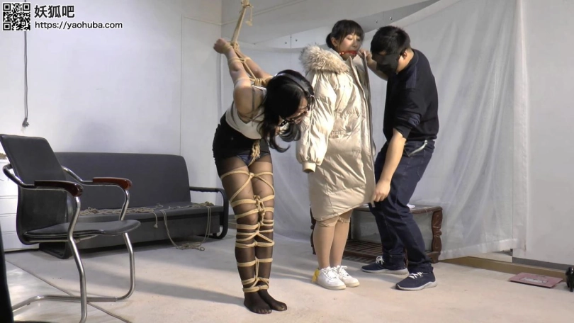OL被绑到雇主家后,女贼也被下药迷晕了,二女都被牢牢绑了起来堵上了小嘴。趁着雇主外出的机会,二人暂时摒弃前嫌互助解开绳索成功逃脱。可是她们终究没能逃脱魔爪,OL再次被雇主拿钱卖了回来,女贼也被做成“快递”送货上门。雇主将二女头对脚的用胶布绑了起来,二女只能无奈的闻着对方的丝袜脚不断的呻吟。