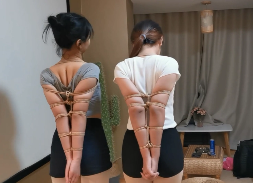 两个妹子都是艺术学院的在读生。柔韧性爆炸。第一次拍摄绳艺。紧缚放置时大家一直在催的题材。这次的拍摄时我本人有史以来最喜欢的一次拍摄。过程完全真实。完美记录了两个妹子从开始的好奇,被绑之后的打闹,发现我太长时间没回来,逐渐消失的笑容,开始疯狂的挣脱,相互逃脱甚至疯狂大叫。