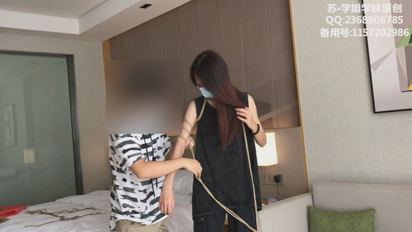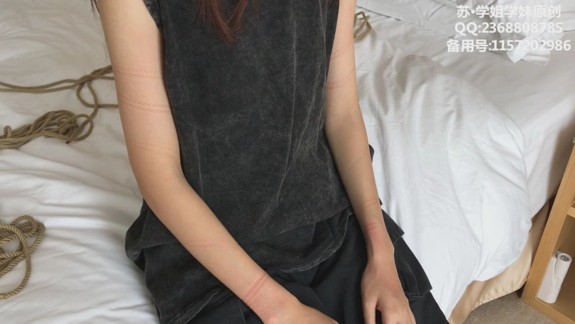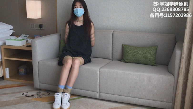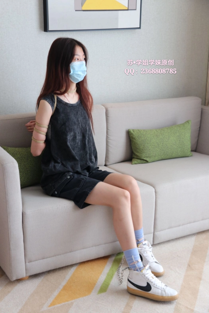 解语对我们这个小作坊来说有一个特殊的身份,因为严格来讲,她是我招到的第一个模特,只是在试镜之后一直处于半退圈状态,直到前不久才复出,所以现在才将她的试镜片发上来,为后续的作品做个铺垫。招到解语的那天,我在当地各大高校的兼职群里发了一天的广告,经历了数十次被骂变态和秒删之后,到了晚上心灰意冷的我完全不抱希望的发了最后一次广告,就招到了解语。解语以前做过模特,看完她发来的照片,我以为身高174却只有90斤的她一定是一个非常奔放狂野的人,结果见了面却发现她是一个非常腼腆的温柔女孩,颇具南方女子的温婉气质。那天酒店的光线非常好,麻绳缠绕在解语纤细的胳膊和腿上,让她那雪白的肌肤显得格外诱人,白色的耐克板鞋和背心短裤更是让她在柔美中透着一丝酷酷的感觉。酒店房间里有一面大镜子,解语一边被绑,一边用好奇的眼神看着镜子里的自己,腿绑上之前,还会趁我找绳子的间隙不停活动带上脚镣的脚,感受被束缚的行走。在TK环节,我问她你能接受挠痒痒吗,她竟然无意间说出脚还好但是腰上痒痒肉更多,结果便是遭到了更疯狂的蹂躏……软妹纸解语的更多曼妙表现,等你在片中与她邂逅。