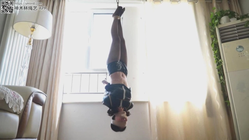 【逍遥】紧缚系列01:吴晓彤蒙眼堵嘴后的倒吊与团缚。看腻了剧情片的你,会怀念过去紧紧的感觉吗?