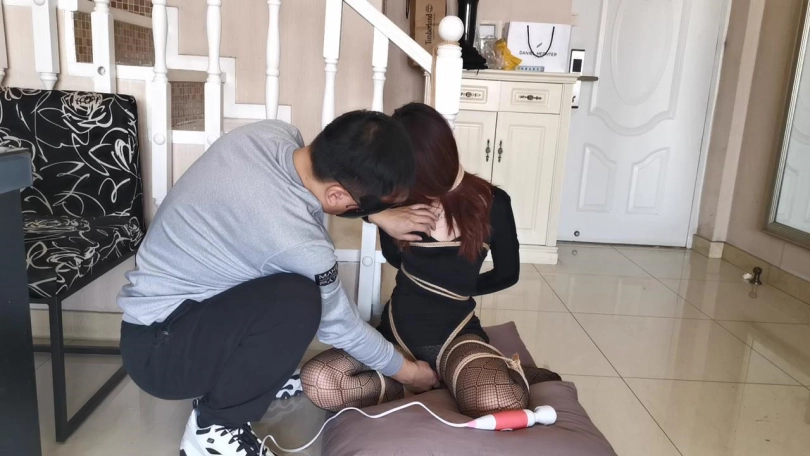【JS】瑾萱 网袜连衣裙分腿跪绑在楼梯杆 [不可描述]棒DD轮番刺激 呻吟不断