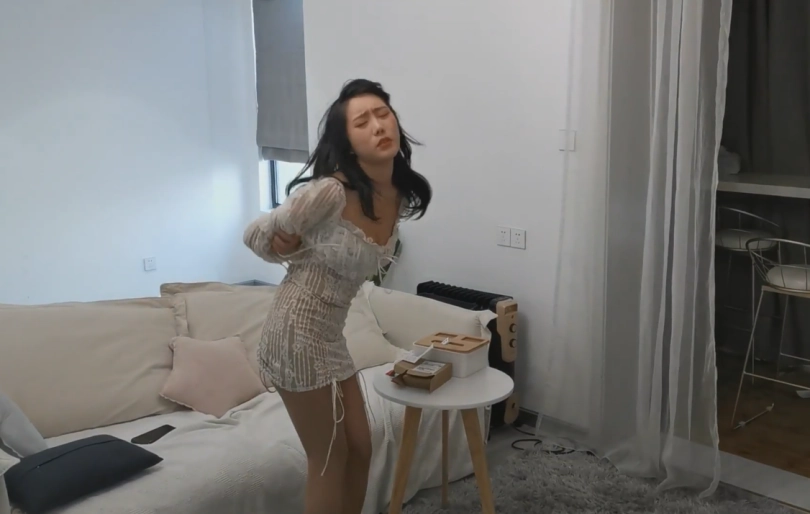 第五幕:梦怡,先是靠着墙壁,摩擦手上的绳结,发现并没有什么效果。开始四处搜寻。各各房间,抽屉…,突然,梦怡在桌子上发现一把剪刀,心中大喜,拿到剪刀。剪开了手上的绳结。手机支付宝提示:您的支付宝收款2000元(画外音:还算遵守约定,这糖果,把我捆绑的现在还浑身酸疼,幸好解开了,不然。钱没赚到,还搭进去我一双丝袜。不过,还蛮刺激的。)梦怡解开捆绑双腿的绳子后。躺在沙发上,拿着剩下的两个糖果…,已经迫不及待的,想要准备好下一次挑战了…