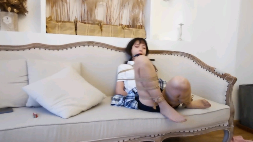 珊珊的“驷马”放置挣扎蠕动,放置在沙发上“M字开脚缚”.挣扎,脚丫.很可爱,我可以看出珊珊很卖力表演[破涕为笑]。