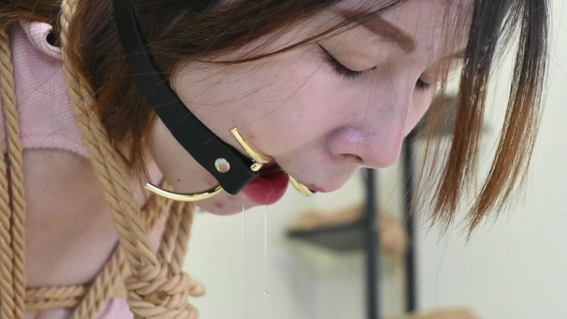 小网红主播瑶瑶上身肉粉色紧身衣,低胸短裙性感至极,细腰翘臀被勾勒得非常完美,加上绳艺的捆绑束缚,美得不可方物,趴在沙发上却被捆绑的无法动弹,口水肆意流淌令她羞耻不堪,想要挣脱束缚却只能痛苦忍耐。