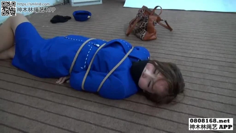 【逍遥】《馨媛绑空姐1》美女馨媛绑架蓝衣空姐蒙眼堵嘴装麻袋