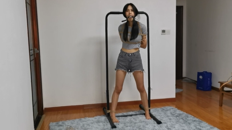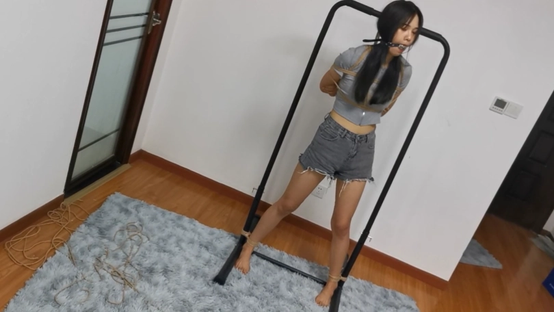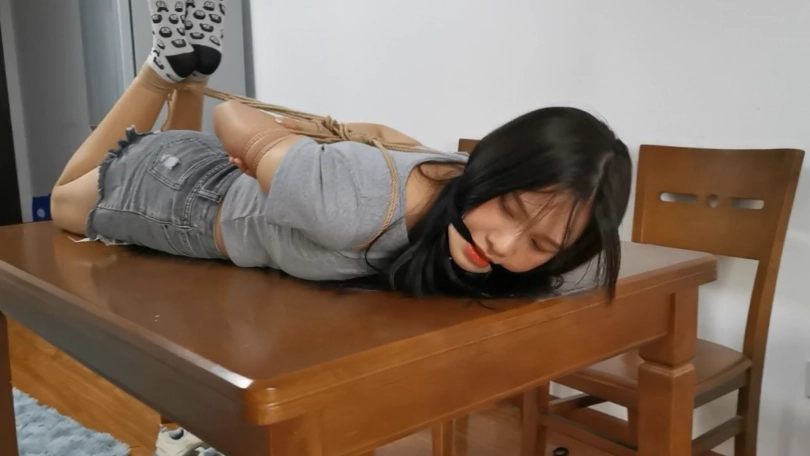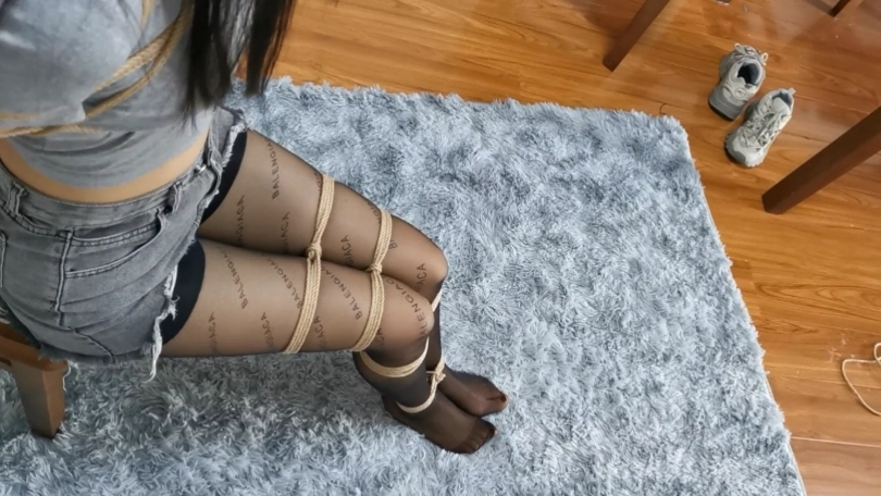 长腿美女绒绒被奇怪的劫匪劫持回家,劫匪和绒绒约定给她三次机会,只要她能挣脱身上的绑绳,就放了她;否则就得被他每天换着花样绑一个月。绒绒感到非常奇怪:这是什么约定,普通的劫匪不都是图财嘛?但是为了自己的自由,也只能被迫答应。于是一场脱缚挑战就开始了,劫匪美其名曰:要对她公平,所以要用摄像机记录她的挣脱过程,作为证据。绒绒心里骂道:你要是那么好心就好了。绒绒回想起自己在电视里看的绑架情景,绳子绑的都非常敷衍,三次机会自己应该很大几率可以挣脱。然而这场游戏真正开始的时候绒绒才发现理想与现实差距很大,这个奇怪的劫匪绳技非常厉害,日式蛇缚,驷马,吊缚花样不断,不管她怎么努力挣扎,都是徒劳。劫匪还恶趣味的不断在她的美腿美脚上下功夫,性感黑丝,日常短棉袜,裸足,似乎每一样都要尝试一下。嘴上的束缚虽然不严厉,但是也从不重复,胶布封嘴,丝袜勒嘴,小口球堵嘴,这些道具似乎都不会严重破坏脸型影响颜值,目的也不是完全让她说不了话,更像是一种警告,警告她现在所处的窘境。绒绒叫苦:这个人真是个专业的变态,谁来救救我。一旁拿着摄影机的劫匪看到绒绒挣扎的画面早就受不了了,不断的喘着粗气,但是又不得不装的像正人君子,心里想:cao,原来当劫匪也那么辛苦。虽然绒绒脱缚失败早就是他意料之中的事,但他还是意出望外。猥琐的对绒绒说:你就老老实实的陪我一个月吧,我会好好用绳子打扮你的。可怜的绒绒心里早就叫了一万声不要,然而一切都是徒劳。。。
