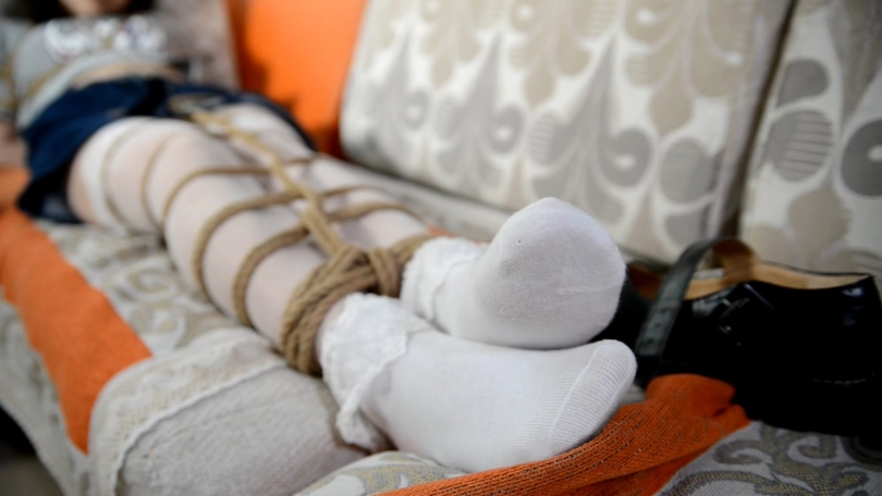 白丝套上花边棉袜再穿上娃娃鞋或学生鞋,总是给人一种特殊的感觉,如果是有点肉肉的清纯女孩穿上那就更有味道了,小敏就是这样的女孩,在本集小敏被日式加腿部多道捆绑,几乎是一动不能动,在这种情况下一层层剥下鞋袜,把玩美脚简直了。