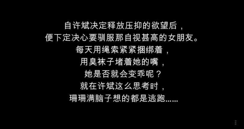 题外话就到这里,接下来是剧情介绍:上回说到,不堪侮辱的许斌释放了内心的野兽,将嚣张傲慢的女友珊珊捆绑起来,不仅用臭袜子堵嘴,还用木棍抽打珊珊的脚底和屁股以作惩罚。但是——仅仅是这样,珊珊便会屈服于许斌吗?许斌的惩罚奏效了吗?