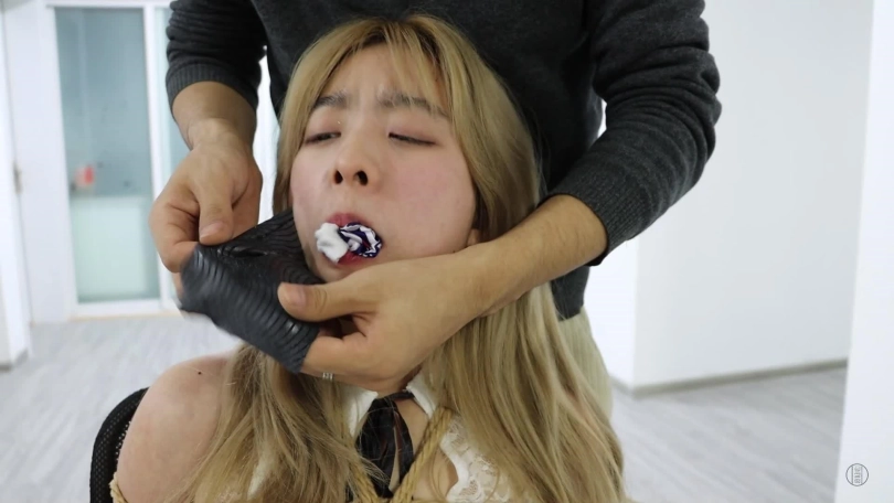 主演模特琦娜。本部剧情堵嘴爱好者不容错过,特别是严厉堵嘴的,剧中用了毛巾,丝巾,胶带,原味长筒袜,白厚毛巾,黑胶布,原味内裤,口球,原味袜子,白布等堵嘴物品,真的是把模特嘴巴堵得满满的,让模特楚楚可怜。除了堵嘴外,当然还少不了捆绑了,片中出现三种不一样的姿势,让广大同好领略不一样的美。剧情介绍:琦娜欠下一笔巨款,随后被债主上门绑架,接着就被犬缚在床上逼迫,鞭打她,还让她承认自己是狗。女主承认是狗后,又被捆在椅子上,进行花样堵嘴及各种折磨,椅子缚结束债主还是觉得不过瘾,又给她在床上来了个手绑脑后的变种驷马,然后内裤加口球,原味棉袜加原味长筒袜堵嘴,各种鞭打,最后放置,好不快活。