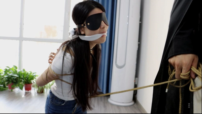 那些臭袜子便成了堵塞她污言秽语的有效刑具,被塞得满满的小嘴发出甜美的呻吟,被绳索捆绑的身躯更进一步的宣誓着她被奴从的身份,手指被铐上拇指铐,金属的质感令她更加屈服,穿着白棉袜的双脚被绑上绳镣,如古代的囚犯、又如待宰的动物一般被拉着行走,一切都那么屈辱,可胯间的股绳却让她不能轻易的陷入愤恨。