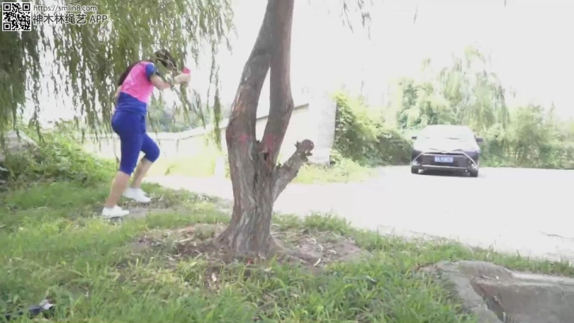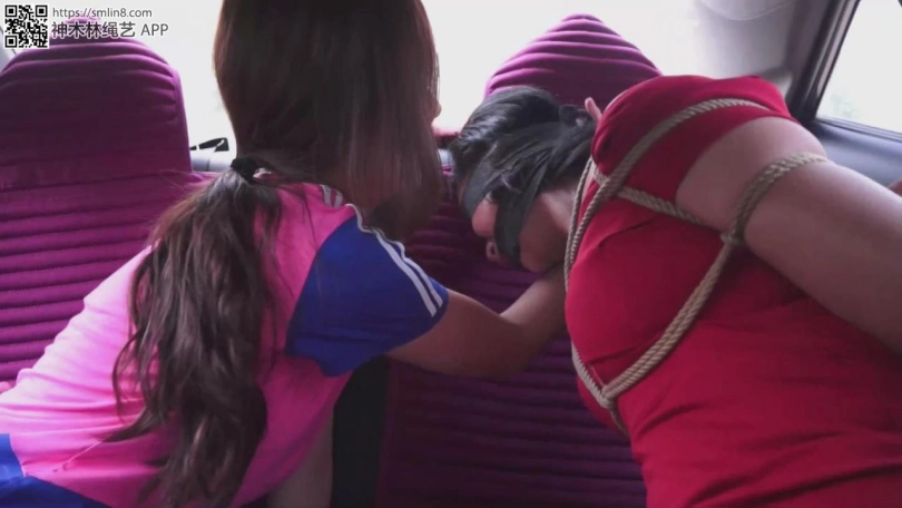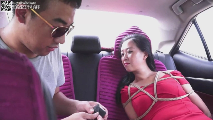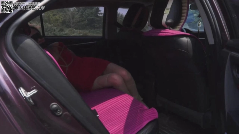 小白把车开到没人的地方后,下车拿出很多绳子来把于姐上半身捆好后,抬进车里,关上车门,开始“车震”。