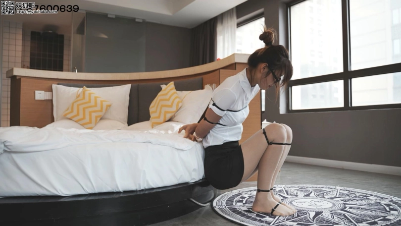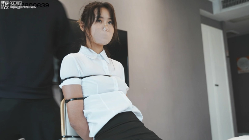 很紧的拘束,虽然简单,但是绝对挣脱不开。胶布封嘴和鼻夹同时用,控制呼吸很有效果。