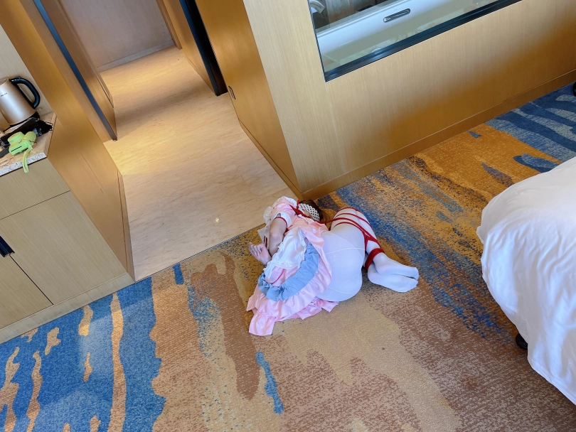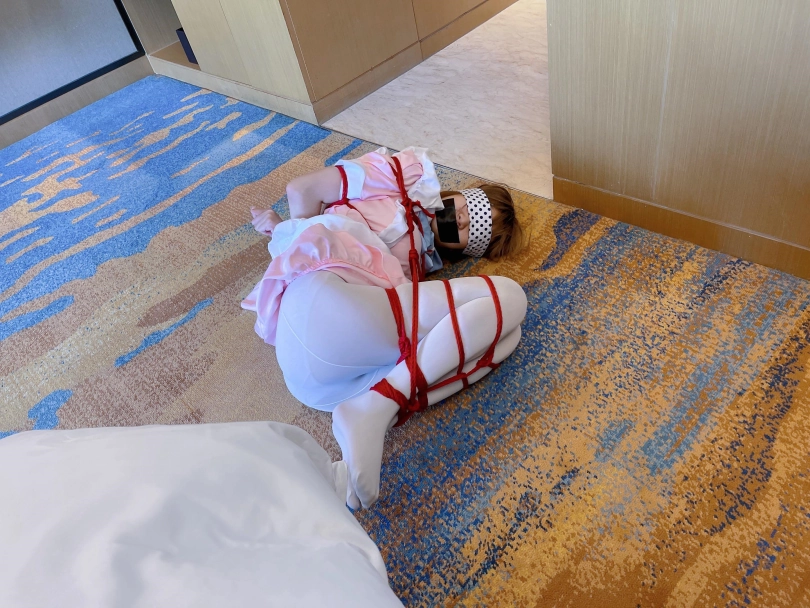 模特挣扎超级努力,用团缚的姿势在地上移动了很远~几乎可以说是蠕动了~但是...会不会成功呢~