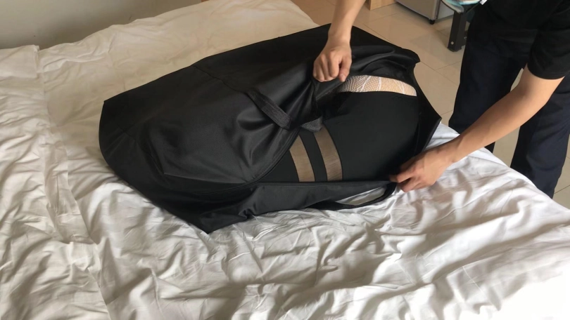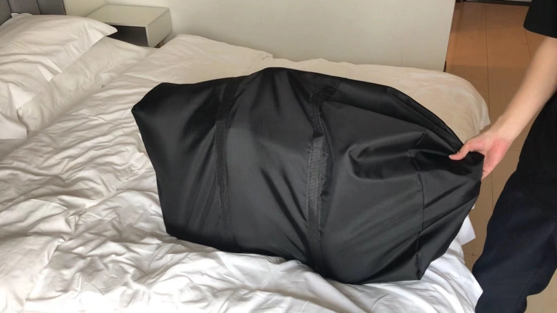 2、旅行袋装入,把小周塞进去花了我半个小时时间,这次就算袋子小我也给她塞里面了!