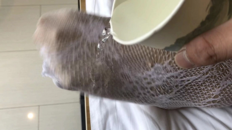 1、小周微透肉丝,外面白色花藤网袜。