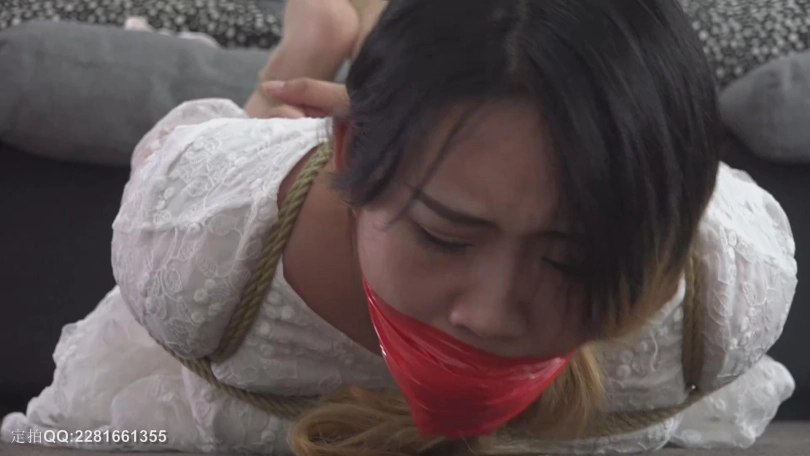 园园的父母都出差去了,只留下她一个人在家,这天,她正在沙发上玩手机,忽然,一个劫匪闯了进来。。。。园园被劫匪捆绑在地,然后反复更换堵嘴物堵园园的嘴巴。。。。