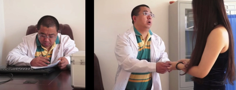 美女拿着药准备离开,就在她要开门的时候,手突然自己并拢在身后分不开了,然后脚也并拢分不开,然后嘴巴也分不开,说不了话了,她害怕的双腿并拢跳回医生身边,对着医生大喊大叫,但医生就像看不到她一样,她惊恐的都要疯了。