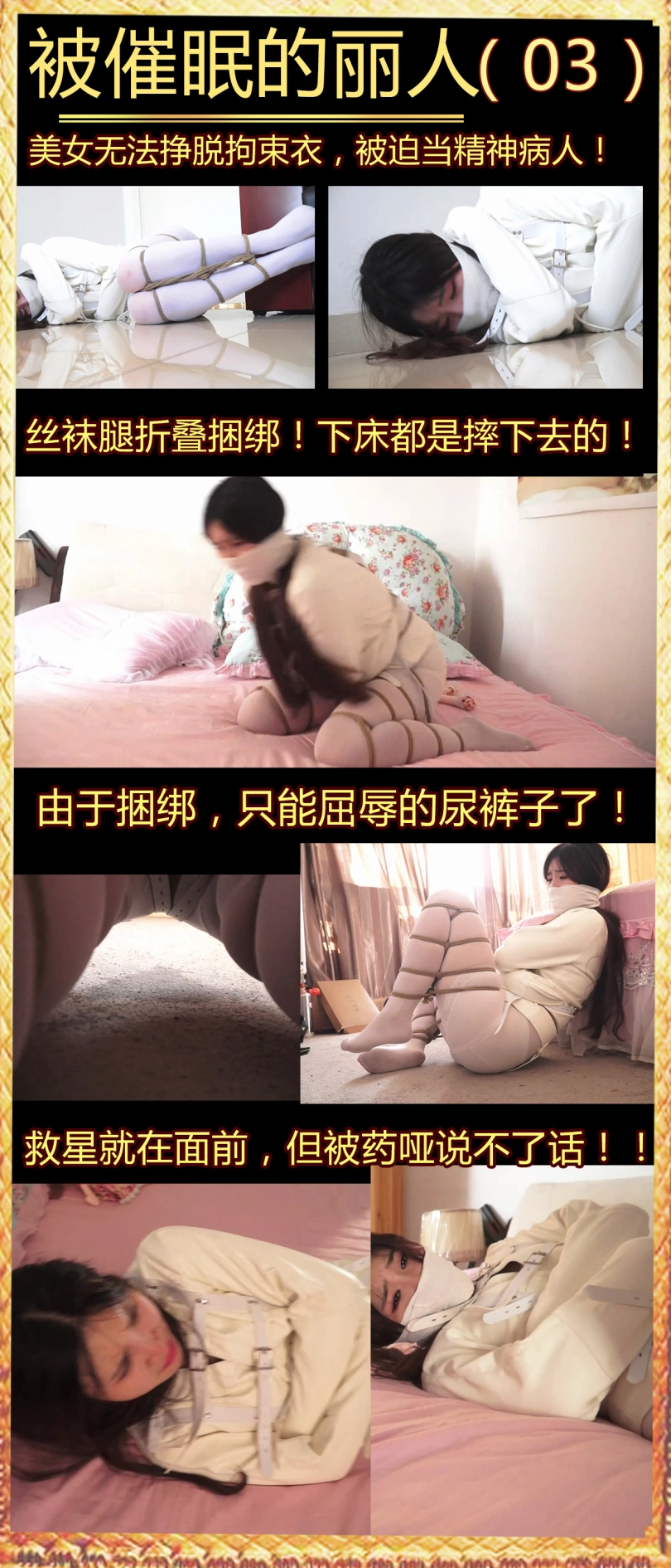 【逍遥】《被催眠的丽人03》美女拘束衣挣扎无用~白丝美腿折叠捆绑,被迫失禁!救星在面前却被当成病人无法求救!