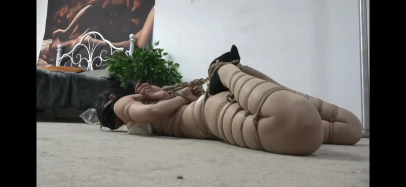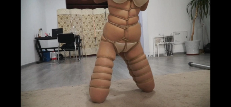 眼镜男子在将凯文捆着溜达了一圈之后,重新将她驷马捆绑起来,还不忘再次让她享受一下按摩服务。等到男子玩的差不多了,男子将凯文直立膝盖顶地捆绑好,这种姿势是很难受的,既要承受手臂的疼痛,还要承受膝盖长时间跪在地上,也是非常痛的,可是辛苦模特了~