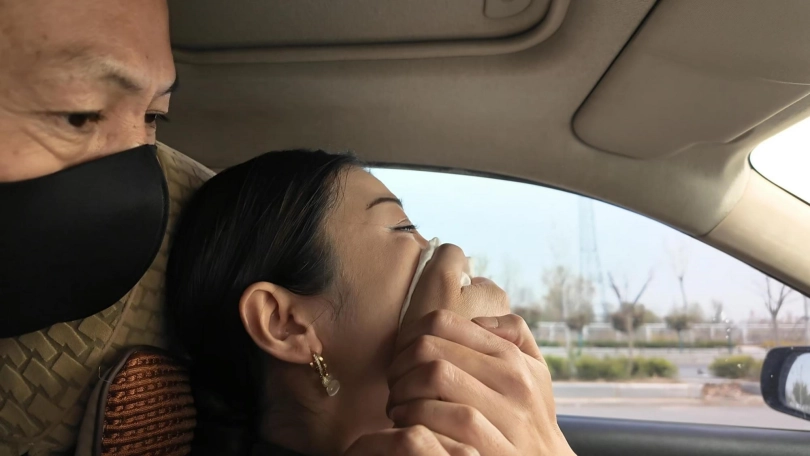 女经理想往常一样下班上车起步出发,车辆在行驶中突然被后座早已藏的男子用毛巾捂住口鼻,女经理非常惊慌,拼命挣扎,只能发出呜、呜的声音,在挣扎的过程之中想起车还在行驶,连忙急踩刹车....