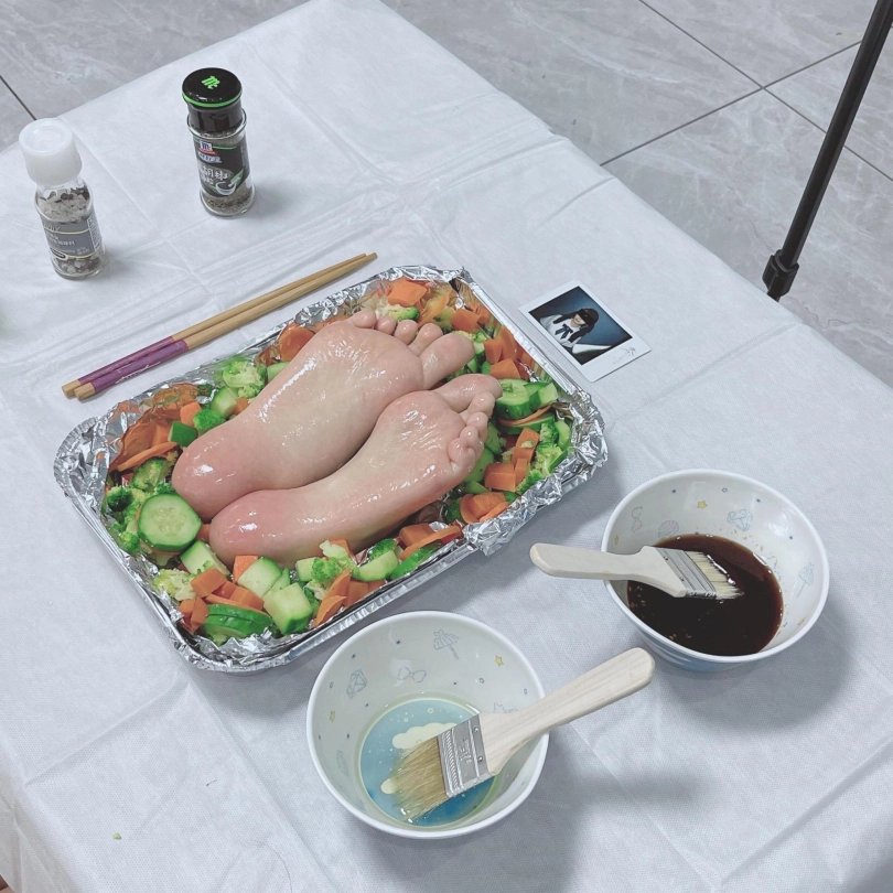 为了保证最棒的用餐体验,本店采用最新的保险技术,顾客您看,这双足底是鲜活的哦(戳),无论你做什么 ,足底的主人都会100%感受到呢!