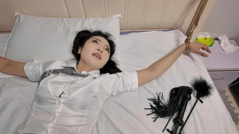 学生把老师迷晕扶到卧室,大字捆绑,这下可以随心所欲玩弄美足了,把黑丝美腿抱着怀里好好把玩,玩醒之后用鞭子抽,竟然还拿出了棒棒,弄得老师娇喘不断,高超不断,最后被愤怒的老师用铁链勒过去了.