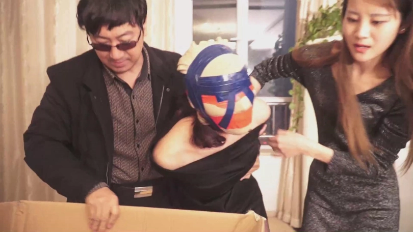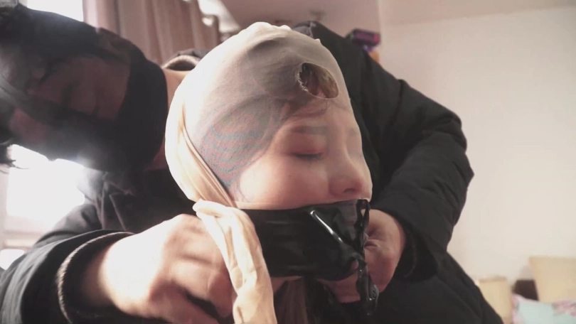 徐萌刚被解开看到眼前头上罩着丝袜的人还是吓了一跳!