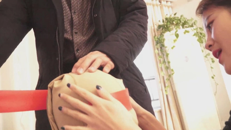 李强把门关了下怕被外边的张晴看见,赶忙过去给女友徐萌松绑。