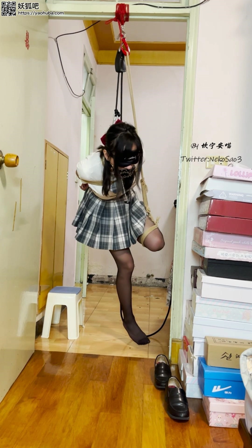 【坎喵】黑丝JK单脚吊缚自缚