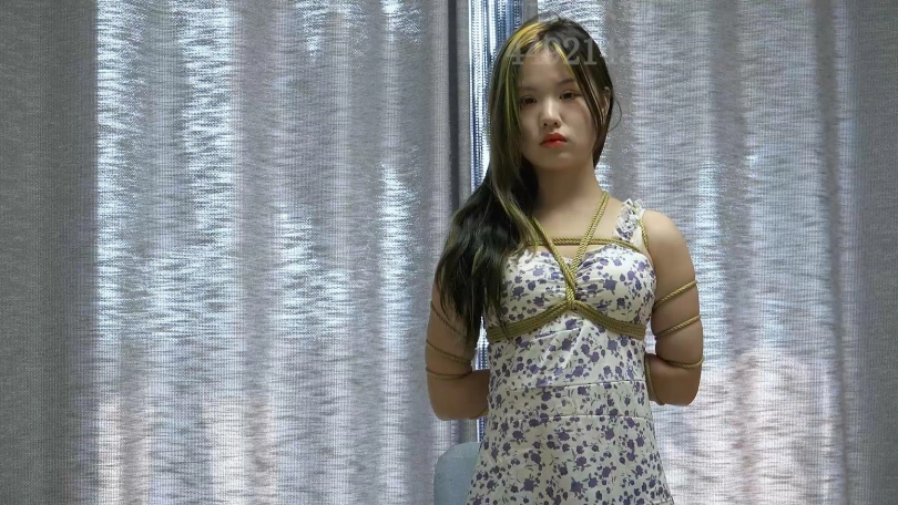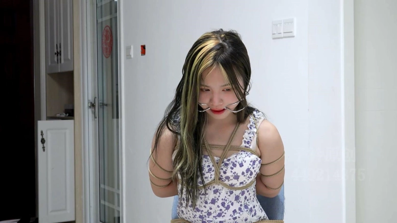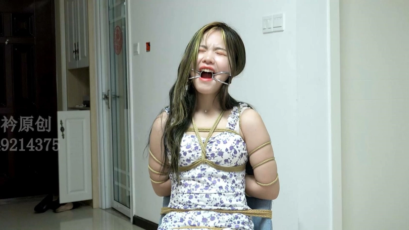 【子衿】美女一个人被绑在家里椅子带上口枷流口水,你会几点回家