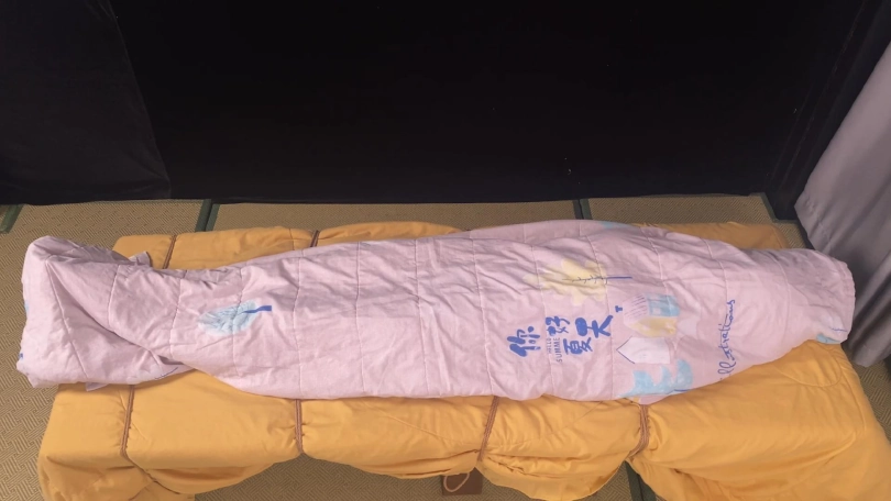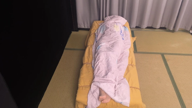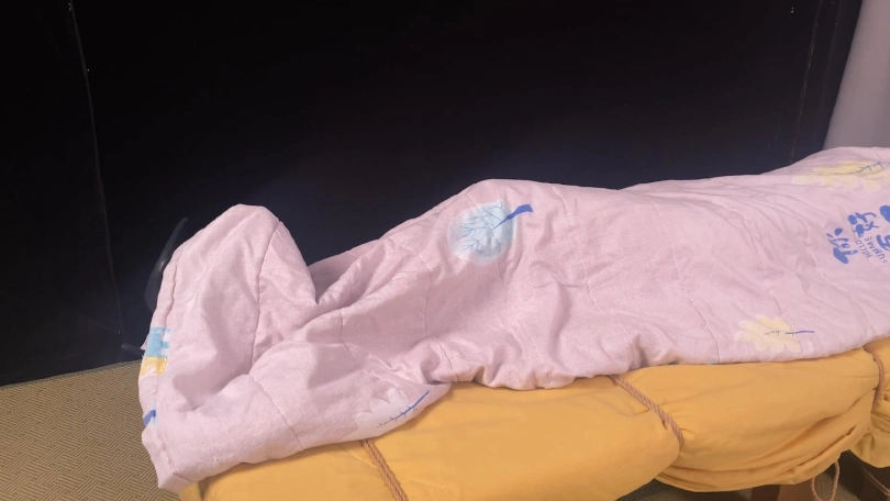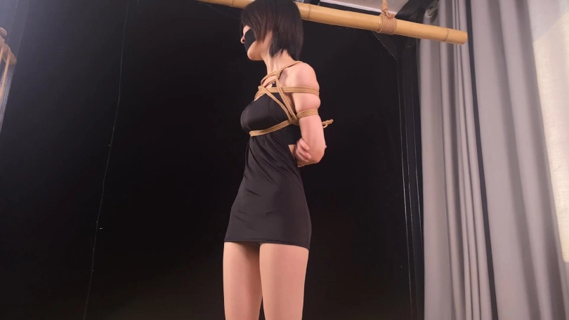 【象人】挣扎床缚 嗷嗷-黑色连衣裙+肉丝高跟,封住嘴巴和眼睛,固定床上,挣扎,最后被棉被包裹!