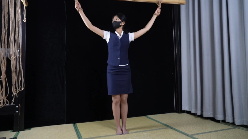 【象人】女女摸摸 猫猫&嗷嗷-空姐制服,咖色丝袜猫猫,大字站立捆绑,被嗷嗷各种咸猪手摸摸。