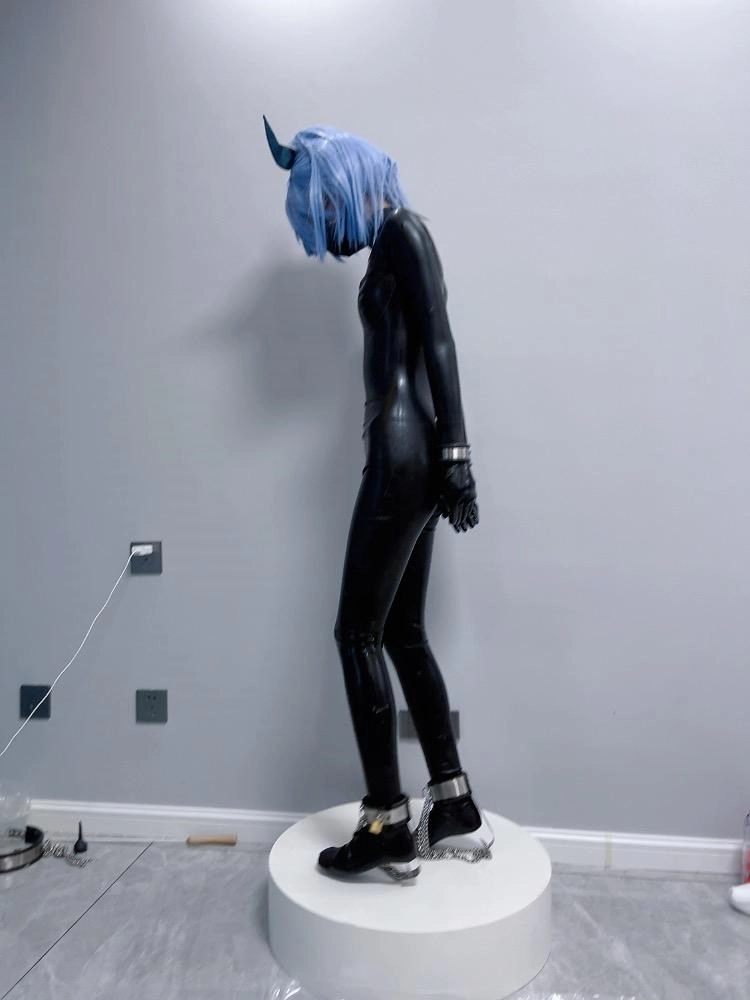 可怜的魔法少女就这样穿上羞耻的胶衣,双手被反铐在身后,艰难的维持着平衡。最要命的是脚底的尖刺镣铐,只要稍微维持不了平衡冰冷的尖刺就会狠狠刺痛脚底。这可是真正的刑具,一刺下去不受伤是不可能的。少女只能羞耻的站在收藏用的手办台上,被冰冷的刑具强制接受踮脚的惩罚,疯狂的压榨着少女的体力.....
