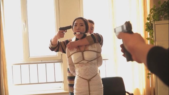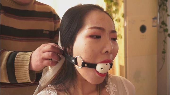嫂子被大龙强迫穿上洁白的婚纱,捆绑堵嘴。大龙捏着嫂子的嘴巴,给嫂子化妆,涂口红。然后用塞口球塞上嫂子的小嘴。大龙拿出戒指,单膝下跪向嫂子求婚。嫂子不断摇头拒绝。大龙拿出武器威胁嫂子,嫂子仍未答应。无奈,大龙只能另想办法。他拿出手机,打电话给“我”,说嫂子已经落在他手上,让我单枪匹马赶回去。并且把电话放到嫂子耳旁。嫂子很想让我不要过来,但无奈嘴巴被口球塞住,只能发出“呜呜呜呜呜”的声音。