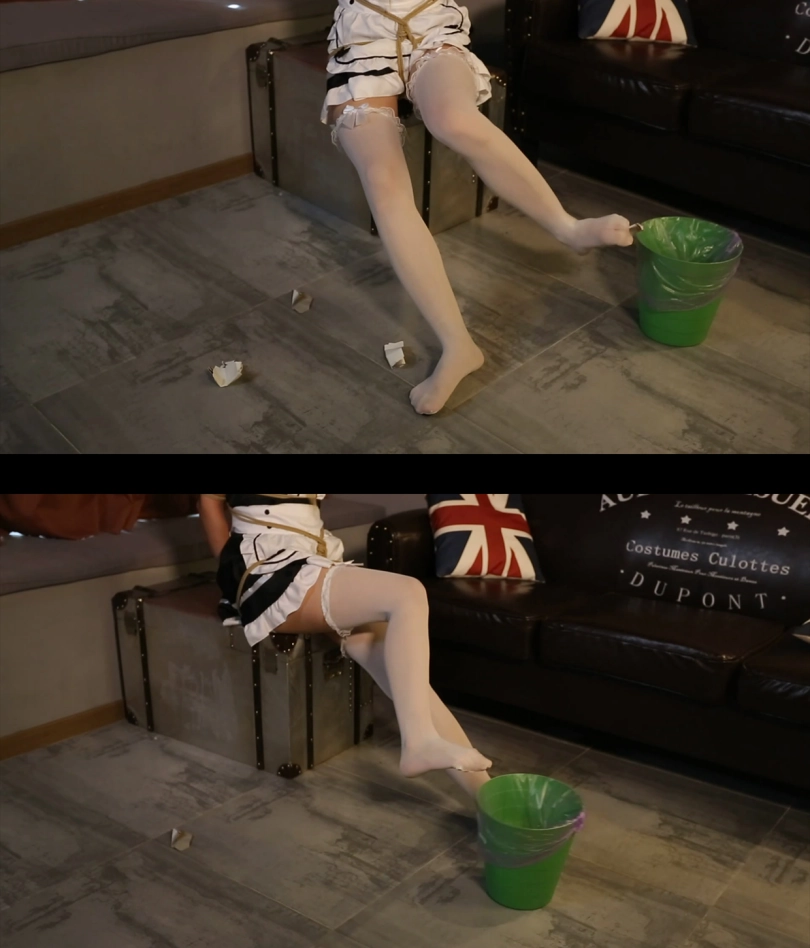 丽人的拘束游戏的特点就是真实性,只见美女艰难的用白丝小脚夹起纸团,然后用白丝脚趾把纸团夹入垃圾桶,非常真实的一段。当然,最后我们可怜的美女也累的香汗淋漓,白丝美腿酸痛无比。