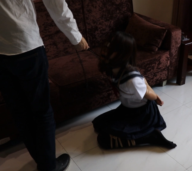 首先,给橘子绑日式后手缚之后让橘子下跪。然后把妹子一只腿折叠起来绑住,绑成折腿缚。另一只脚不绑。一只腿被折叠起来的妹子无法凭借自己的能力站起来,而另一方面另一只自由的腿又给少女一点点希望....这时候牵着橘子酱的项圈,强迫她以这种姿态爬行。。(看官们可以从膝盖磕在地面上的声音来了解爬动有多疼)妹子的腿超漂亮!!摇摇晃晃的爬行的样子特别特别可爱~