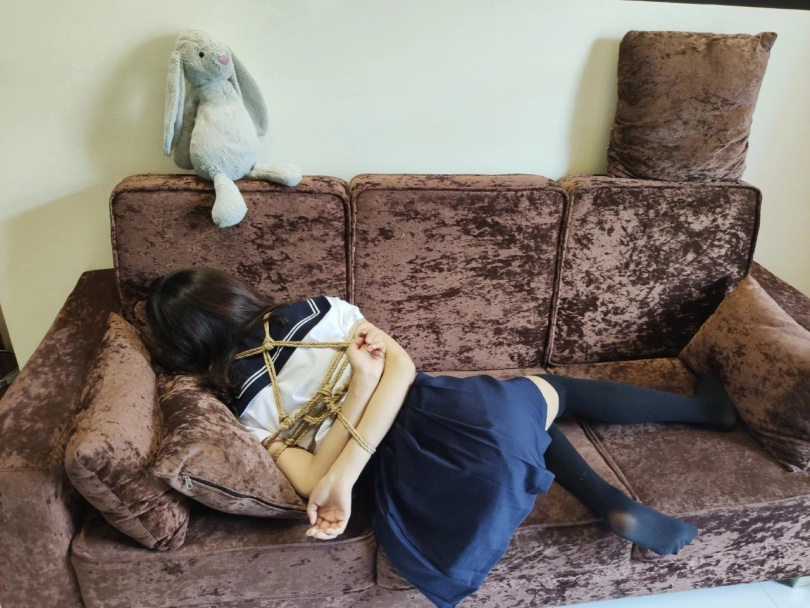 滴蜡玩够了之后,把妹子一个人放置在沙发上,让妹子自己扭动挣扎,而我真的离开了房间去取电池。(为防止无聊 只剪辑了一段)