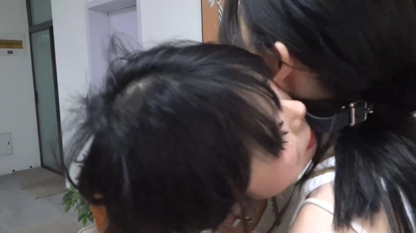 2个美女回到客厅决定先解开拘束。2个美女奋力挣扎蠕动,互相摩擦身体和丝袜美腿。2个人卖力的互相磨蹭小嘴,几次都亲到一起了,但磨蹭了快2分钟都没弄开堵嘴。