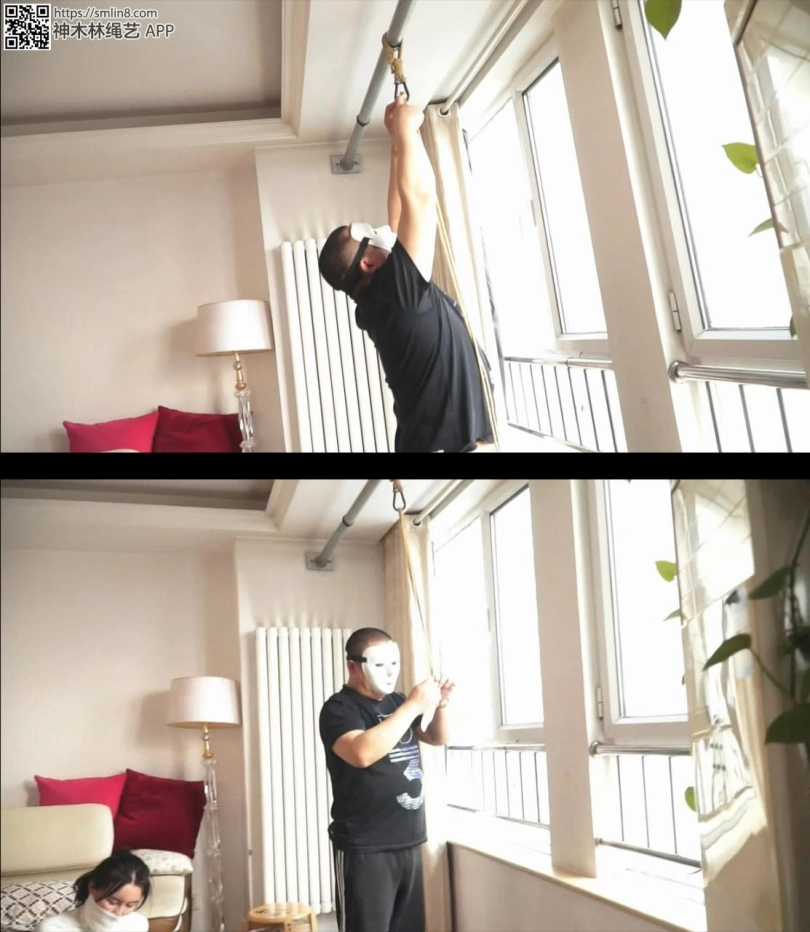 但这次男人没有停手,他好像还想加固捆绑的样子。。。。