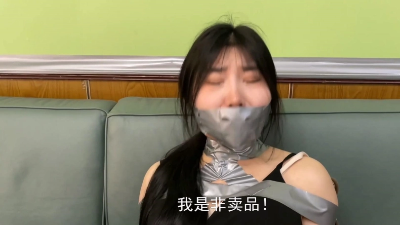 最后时间到了。摄影师坏笑着是你忘了你刚刚才介绍这个胶带吗?没用特殊的工具着胶带根本没法解开的哦,气的2个人对着镜头呻吟求饶的特写。