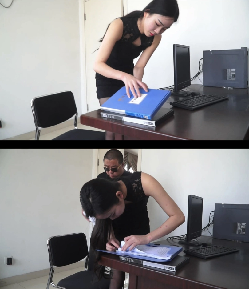 女警看黑帮老大走后,发现办公室门没锁,她非常开心,偷偷潜入进去