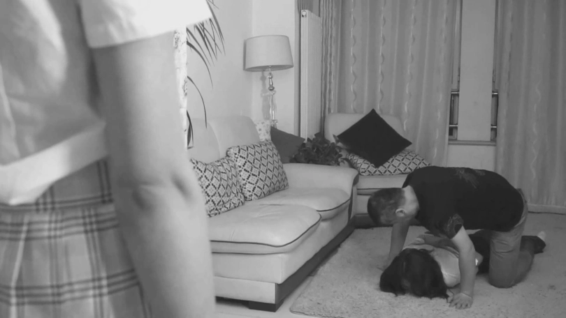 下午放学回家,当我打开门的时候,被眼前的一幕惊呆了。爸爸把妈妈按在地上,两人正在配合着用绳子