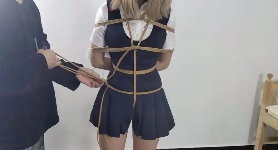 尝试一套全新的绑法,嘴巴被塞上开口器,身下的小玩具还在不停的震动,臀部时不时传来一阵抽打,口水不住的往下流,却没有办法拭去。