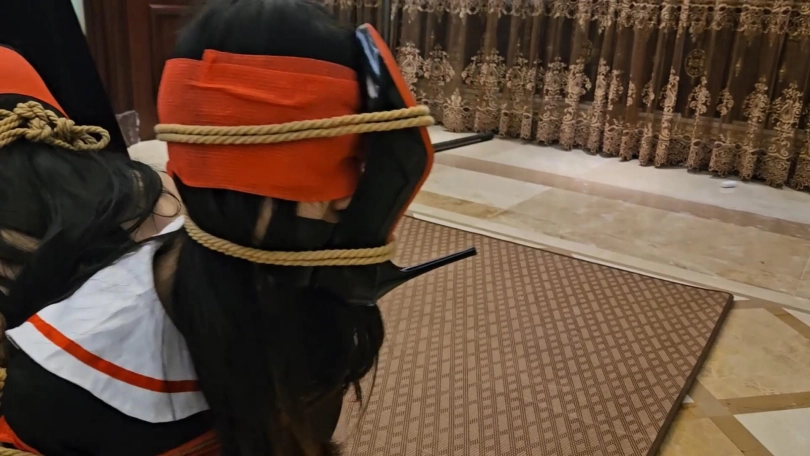 【枫叶】《残酷的绑架案》上,雪婉小智遭遇绑架,背靠背连缚高跟鞋扣脸折磨