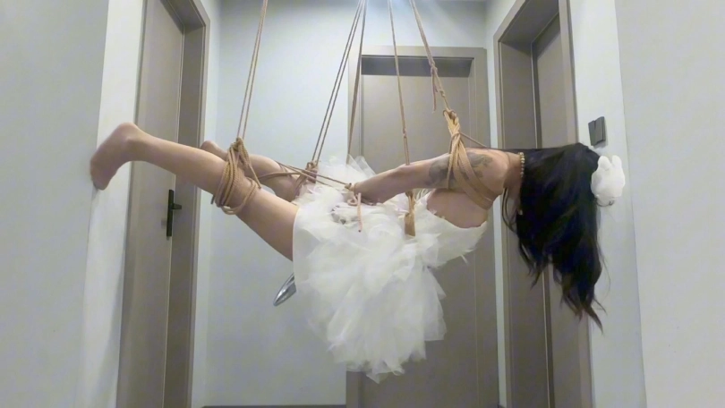 雪白的芭蕾舞裙,白丝,超大口球,空中悬吊,固定强高,没想到悬吊起来之后由于强高受不了开始不停的剧烈挣扎,完成了经典的空中芭蕾舞蹈,完美到兴奋至极,恨不得继续口舌然后吊缚后入,m被爽上天的一天,由于没有吊好,m痛苦并快乐至极的表情和声音表现除了淋漓尽致