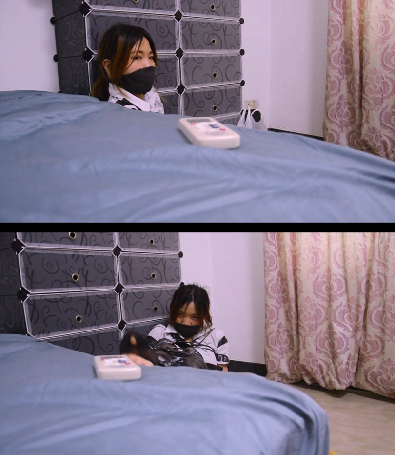 还好床上是席梦思垫子的,女警用丝袜美脚按下席梦思,一下就把遥控器弹了下来。